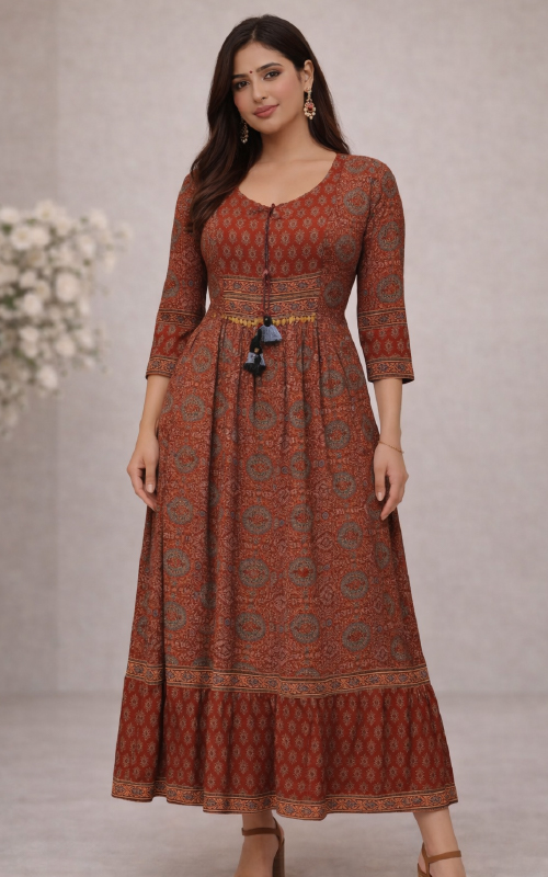 Home » Shop by Collection » Tanvika Rust Ethnic Dress